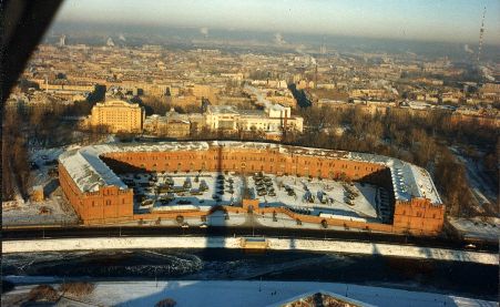 View to the North. The shadow of the belfry points to the Kronwerk, Artillery Museum.